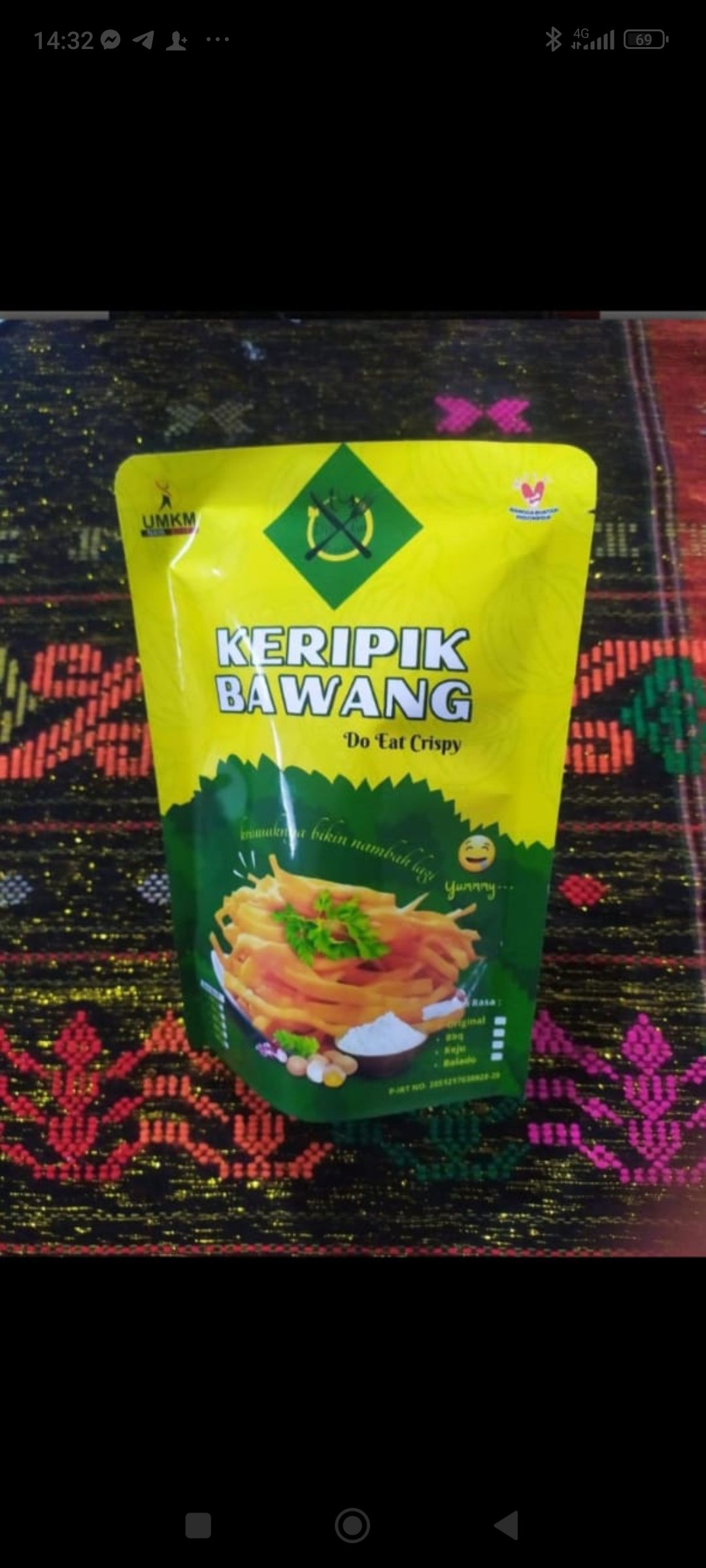 Keripik bawang merupakan cemilan yang terbuat dari tepung terigu yang di padu dengan bawang dan bumbu rempah yang berkwalitas sehingga menghasilkan cemilan yang enak dan gurih