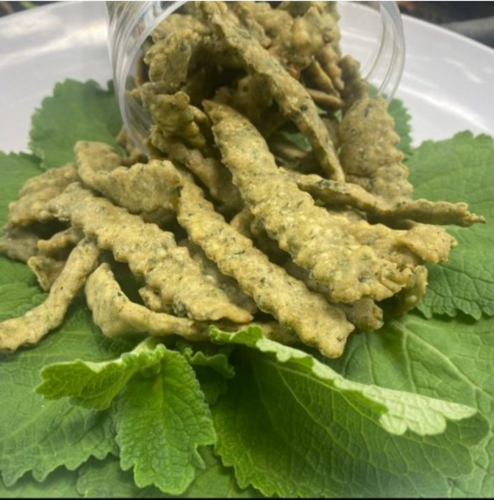 Terbuat dari sayur bangun-bangun yang diolah dengan rempah-rempah dan tanpa pengawet, pewarna dan penyedap rasa